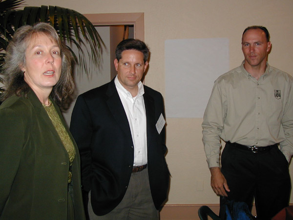 Center CEO Susan Duggan visits with UPS Director of eCommerce Jeff Enyart and Manager of Strategic Alliances Ken Frederick at the Center on September 27, 2002.